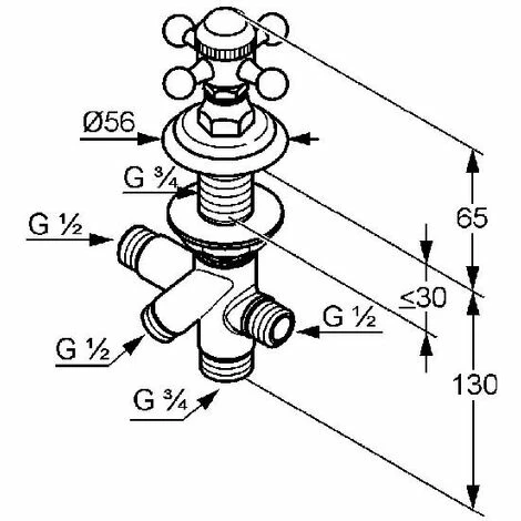 Zwei-Wege-Umstellung DN 15 Kreuzgriff Standmontage Oberteil 360° chrom 518480520