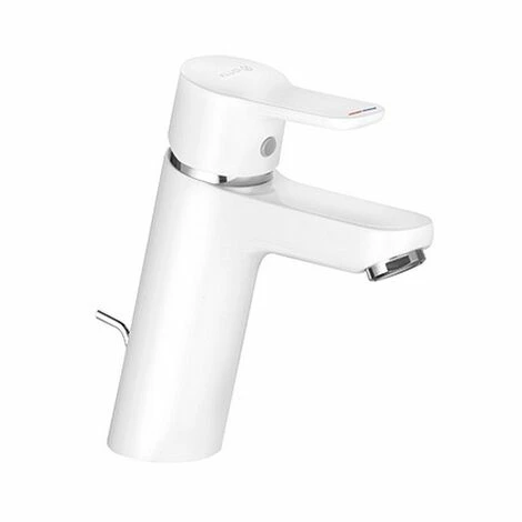 Hersteller KLUDI GmbH&Co. KG Typ: KLUDI PURE&EASY Waschtisch-Einhandmischer 100, DN 15/ PN 10 Oberfläche: 91 weiß/ chrom Art. Nr. 372909165 Waschtisch-Armatur Einhebelmischer Einlochmontage geschlossener Hebel, Metall Strahlregler M24 Keramik-Kartusche