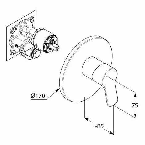 Feinbau-Set mit Funktionseinheit, geschlossener Hebel, Wandmontage, Keramik-Kartusche mit Heißwasserbegrenzung, Durchflussklasse D/C Kludi Flexx.Boxx Unterputz-Körper DN 20 (88011) bitte separat bestellen